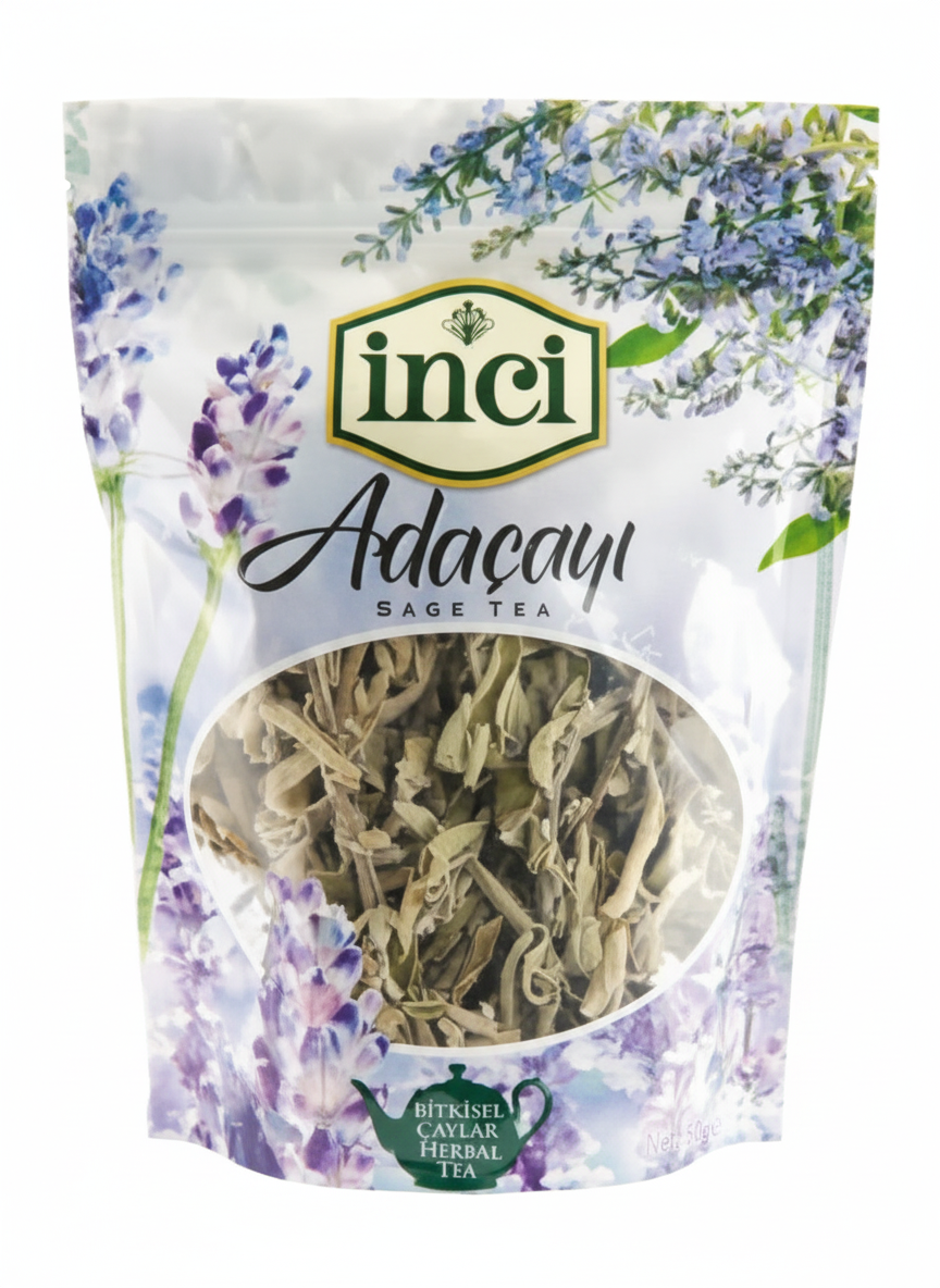 İnci Baharat – Ada Çayı 50 gr (Doypack) | Doğal, Yoğun Aromalı, Taze Yaprak Adaçayı
