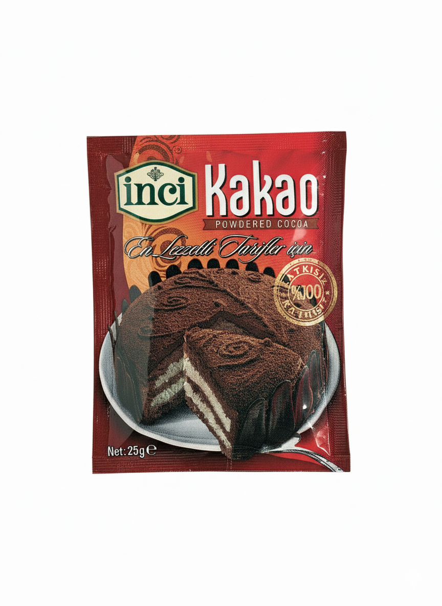 İnci Baharat Kakao 25 gr, yüksek kaliteli kakao çekirdeklerinden üretilmiş, aroması güçlü ve rengi koyu saf kakaodur. Bu ürün, 12 adet tek kullanımlık 25 gram paket olarak sunulur; böylece kakao her zaman taze kalır, bayatlama veya aroma kaybı yaşanmaz.