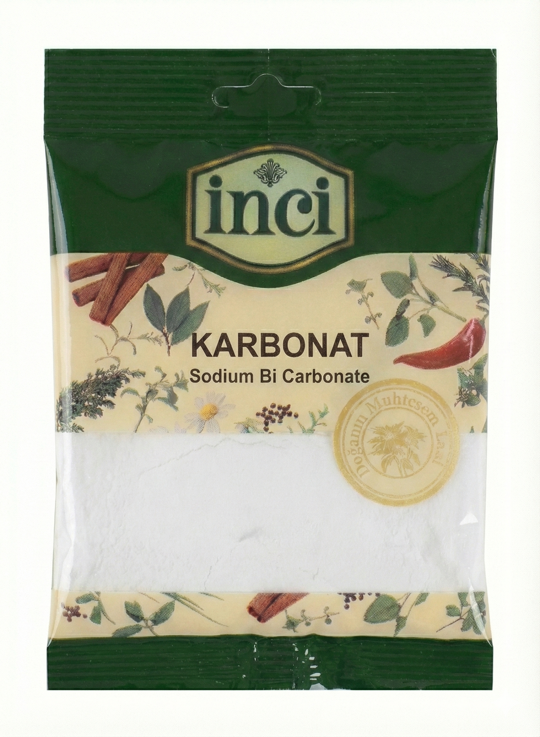 İnci Baharat – Karbonat 40 gr. (Poşet) Mutfakta kabartır, temizlikte parlatır, içecekte ferahlatır. Doğal, saf ve çok amaçlı karbonat şimdi pratik 40 gramlık poşetinde. İnci Baharat’ın titizlikle hazırladığı Karbonat, yüksek saflık oranı, ince granül yapısı ve nötr tadıyla hem mutfakta hem temizlikte güvenle kullanabileceğiniz çok yönlü bir üründür. Keklerden kurabiyelere kadar kabartma gerektiren tüm hamur…