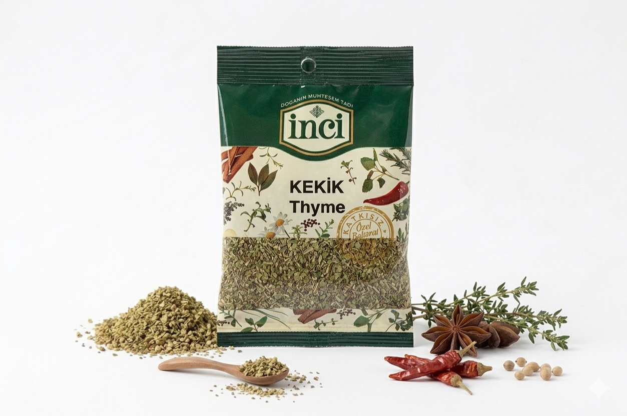 İnci Baharat’ın özenle seçtiği Kekik, dağlık ve temiz bölgelerde yetişen, güneş altında doğal şekilde kurutulmuş, daha sonra elenerek istenmeyen parçalarından arındırılmış yüksek kalite sınıfına sahip gerçek bir aromatik bitkidir. Bu kekik; hem kokusuyla hem tadıyla “iyi baharat” hissini ilk saniyede hissettiren, şef standardında bir üründür.