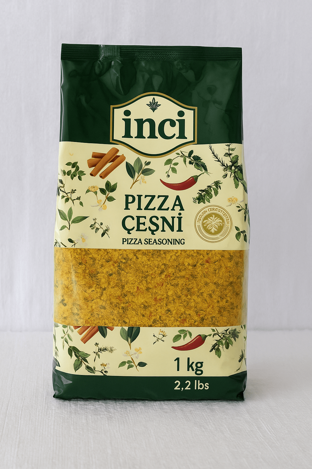 🧂 İnci Baharat – Pizza Çeşni 1 kg. Pizzaya son dokunuşun sırrı! Sosun üstüne, peynirin altına… her dilime karakter katan çeşni.
