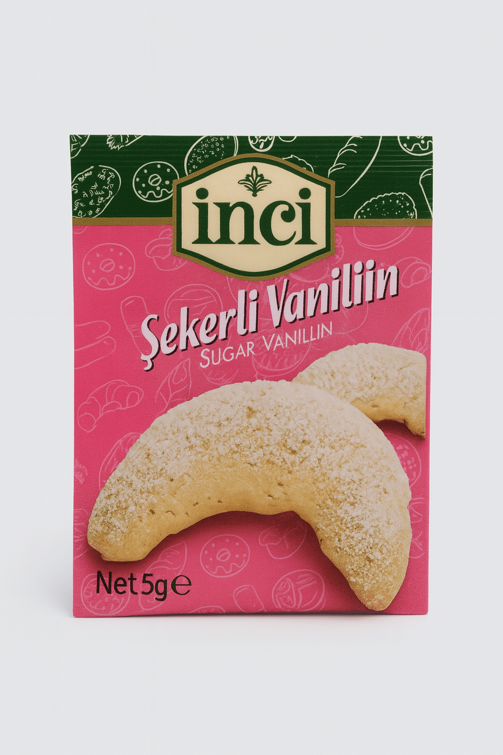 İnci Baharat Şekerli Vanilya, tatlı tariflerine o sevilen yumuşak aromayı ve ferah kokuyu kazandıran özel formülüyle mutfağının vazgeçilmez yardımcılarından biridir.