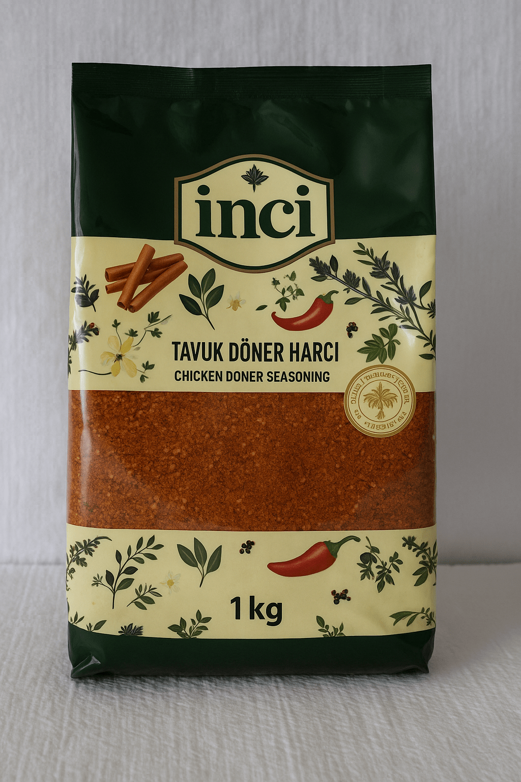 İnci Baharat – Tavuk Döner Harcı, döner ustalarının gizli sırrını evinize getirir. Dengeli baharat karışımıyla, her dilim tavuk altın gibi pişer, tam lokanta lezzeti. “Tavuk dönerin sırrı artık sende!”
